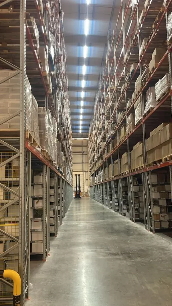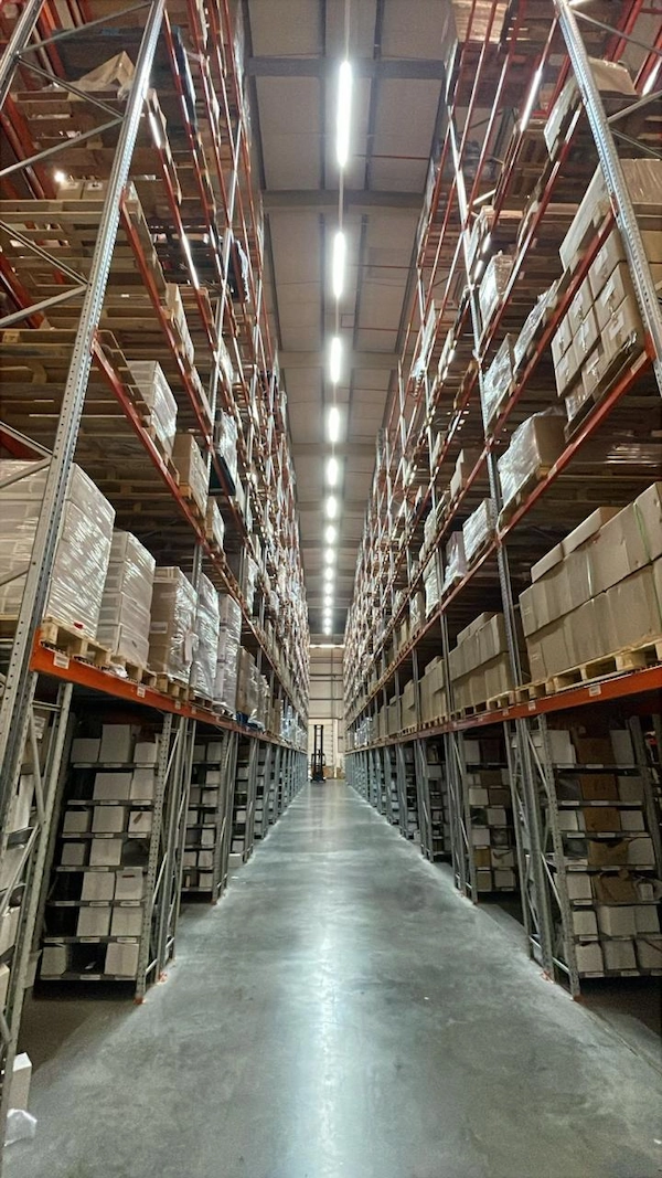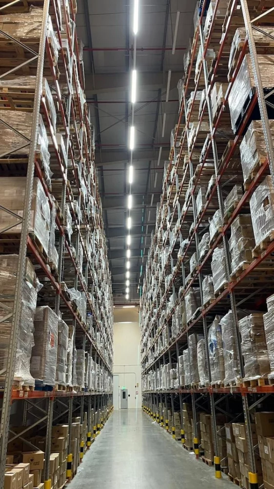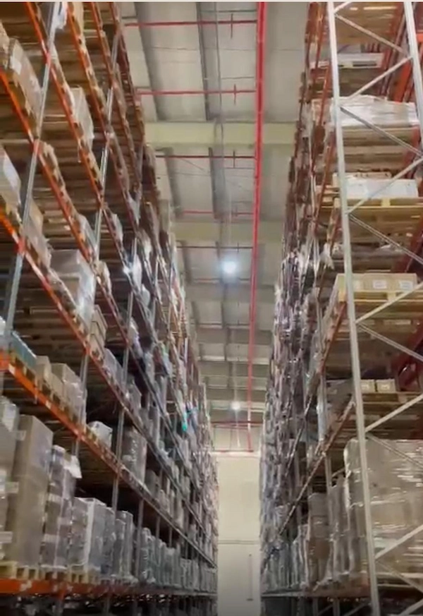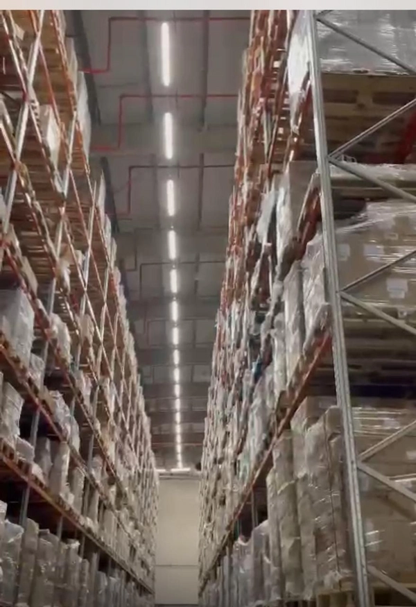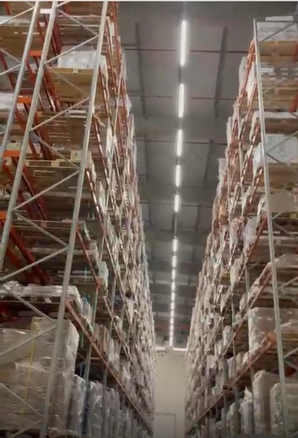 إنارة المستودعات الصناعية: توفير 327 وحدة إضاءة عالية الأداء مصممة للعمليات اللوجستية الضخمة، مع ضمان توفير Safe lighting وتحكم مركزي.
