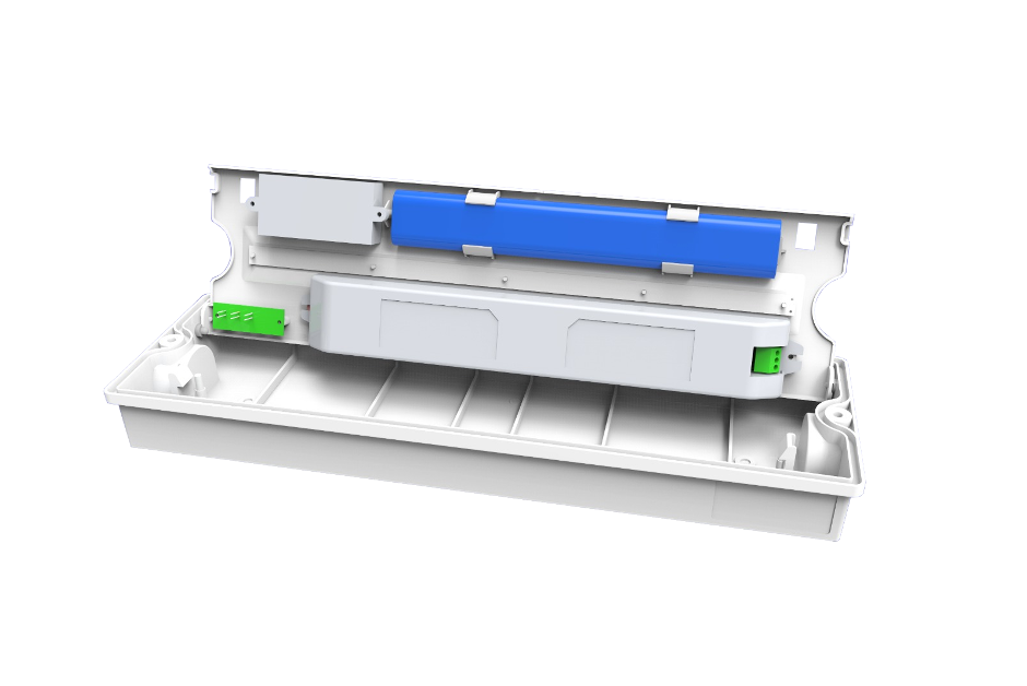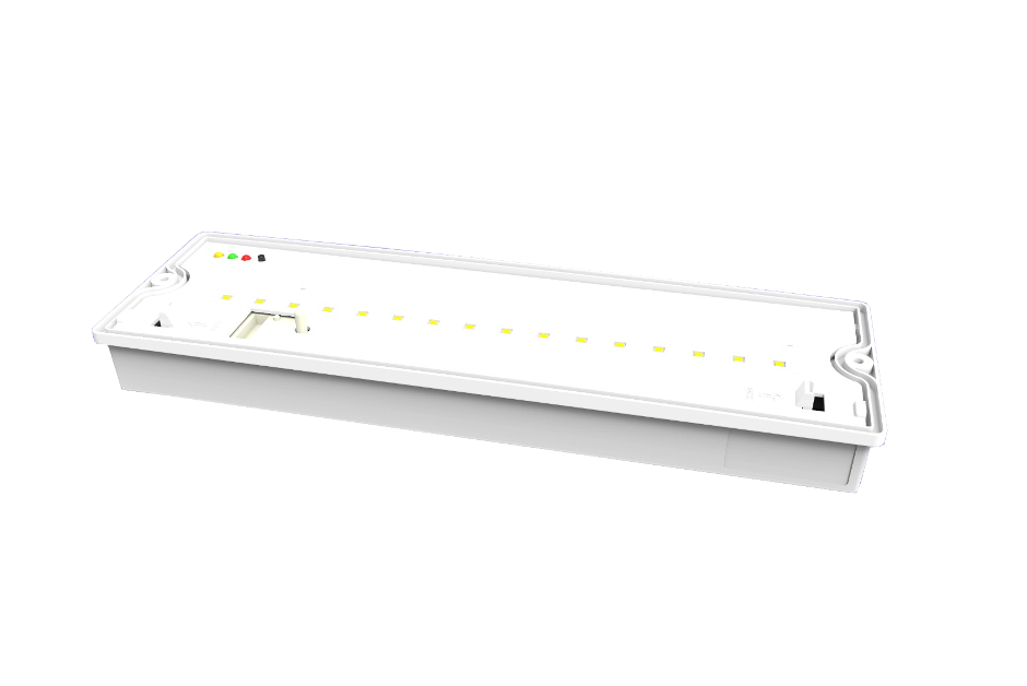 It is a durable surface-mounted emergency luminaire used for corridor and staircase evacuation lighting.Â