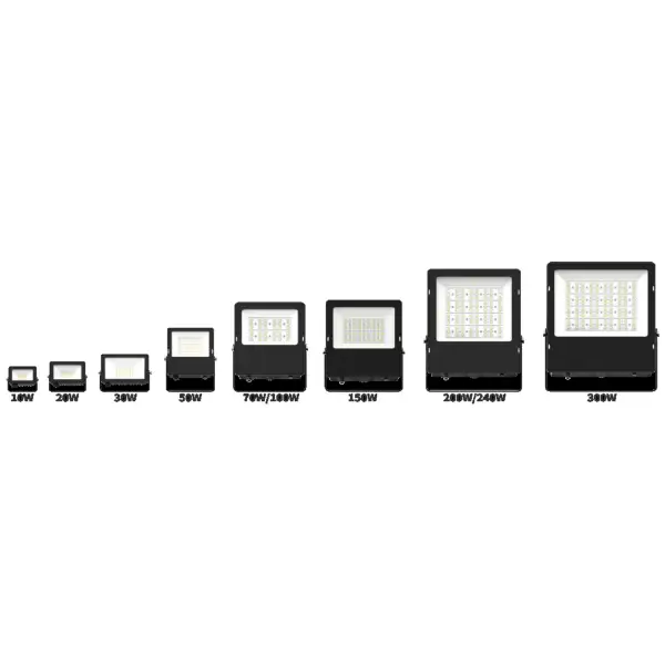 The Alrouf T137 Series LED Flood Light is a versatile solution for Commercial and Industrial Area Lighting, available in a wide power range of 10 W – 300 W. The professional model (70W–300W) achieves high efficacy up to 140 lm/W and delivers up to 45,000 lumens. It guarantees durability with IP66 rating, tempered glass optics, and optional 20 KV SPD. This fixture supports flexible Wall Mounting or Slip Fitter installation and offers advanced 1-10V / DALI dimmable control, making it ideal for large areas requiring precision, efficiency, and a 5-year warranty.