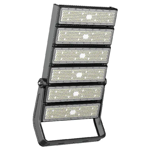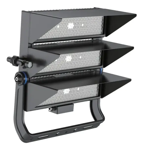 The Alrouf Modular LED Flood Light is engineered for high-power area lighting in the most demanding applications. Delivering exceptional efficacy up to 154 lm/W and a 100,000-hour lifespan, this fixture is built with IP66/IP67 and IK10 protection. It features Philips Lumileds chips, multiple optic lenses (15 types), and 3G/5G vibration rating. With available high-voltage options (347V/480V) and precise aiming, it is an ideal solution for stadium lighting and large industrial areas, integrating top-brand power supplies like Inventronics for reliable performance.