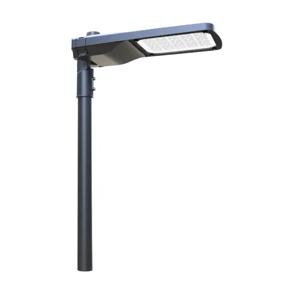 This LED Street Light features a rugged, corrosion-resistant die-cast housing and delivers a high system efficacy of up to 140 LPW. Built for durability, it provides IP66 ingress protection, IK08 impact resistance, and is rated for over 100,000 hours (L70). It supports 10W–200W operation with Philips Lumileds chips and Inventronics/Sosen drivers. Mounting is simplified via a universal spigot for post-top/side-entry and utilizes tool-free access for maintenance. The fixture includes a future-ready socket for integration with control systems and comes with a 5–10 Year Warranty.